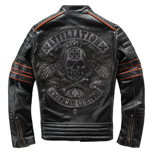 2019 New Men Vintage Black Embroidery Skulls Biker's Leather Jacket Plus Size 4XL Genuine Cowhide Slim Fit Motorcycle Coat $542.10 $1,084.20