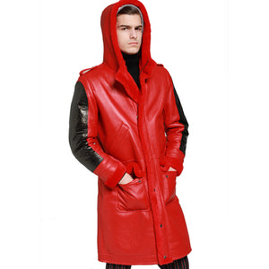 2019 New Mens Gray Sheepskin Shearling Jacket Long Leather Jacket Hooded Fur Coat Fashion Winter Mens Coats Trench Coat $2,247.75 $4,495.50