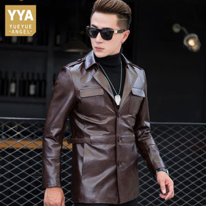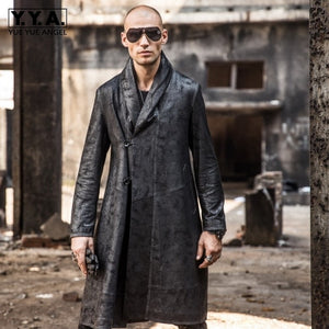 2019 Winter New Men Long Sheepksin Genuine Leather Jacket Loose Fit Trench Coat Gothic Man Military Midi Real Leather Overcoat $1,811.07 $3,622.14