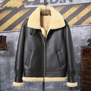 2019 New Mens Brown B3 Shearling Jacket Thicken Sheepskin Coat Winter Fur Coat Mens Genuine Leather Jacket Motorcycle Jacket $1,736.97 $3,473.94