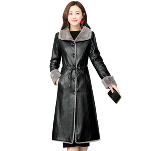 2019 Winter Warm Leather Jacket Women Fashion Sheepskin Coat Long Lamb Cashmere Outerwear Black Large Size 5XL M384 $354.78 $709.56