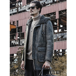 2019 New Mens B3 Shearling Jacket Sheepskin Coat Long Leather Jacket Hooded Fur Coat Mens Winter Coats $2,697.00 $5,394.00