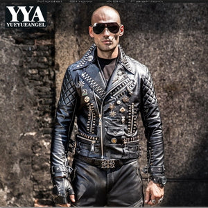 2019 New Motorcycle PU Faux Leather Jackets Men Hip Hop Rivet Punk Style Lapel Fashion Zipper Coats Korean Slim Male Overcoats $642.51 $1,285.02