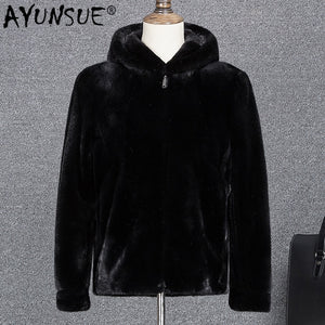 AYUNSUE 2019 New Real Mink Fur Coat Men Hooded Winter Jacket Men Fashions Natural Mink Jackets Leather Jacket ZD0084 KJ2718 $2,601.24 $5,202.48