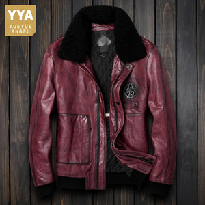 Avirex fly jacket men's genuine leather jacket with fur collar real cowskin leather bomber jacket men winter leather coat $774.00 $1,548.00