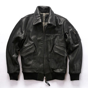 AVIREXFLY 2019 New Men Black Genuine Cow Leather Jacket Fashion Pilot Jackets Plus Size XXXXL 100% Real Cowhide Winter Coats $491.70 $983.40