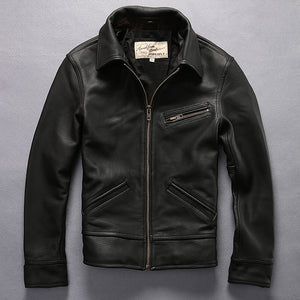 AVFLY 2019 New Men Genuine Cow Skin Leather Jacket Mens Cowhide Casual Biker Jackets Casual Slim fit Single-breasted jackets $475.20 $950.40